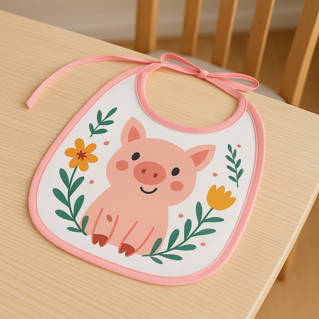 Wit slabbetje afgewerkt met een licht roze bies van 100% Microvezel.